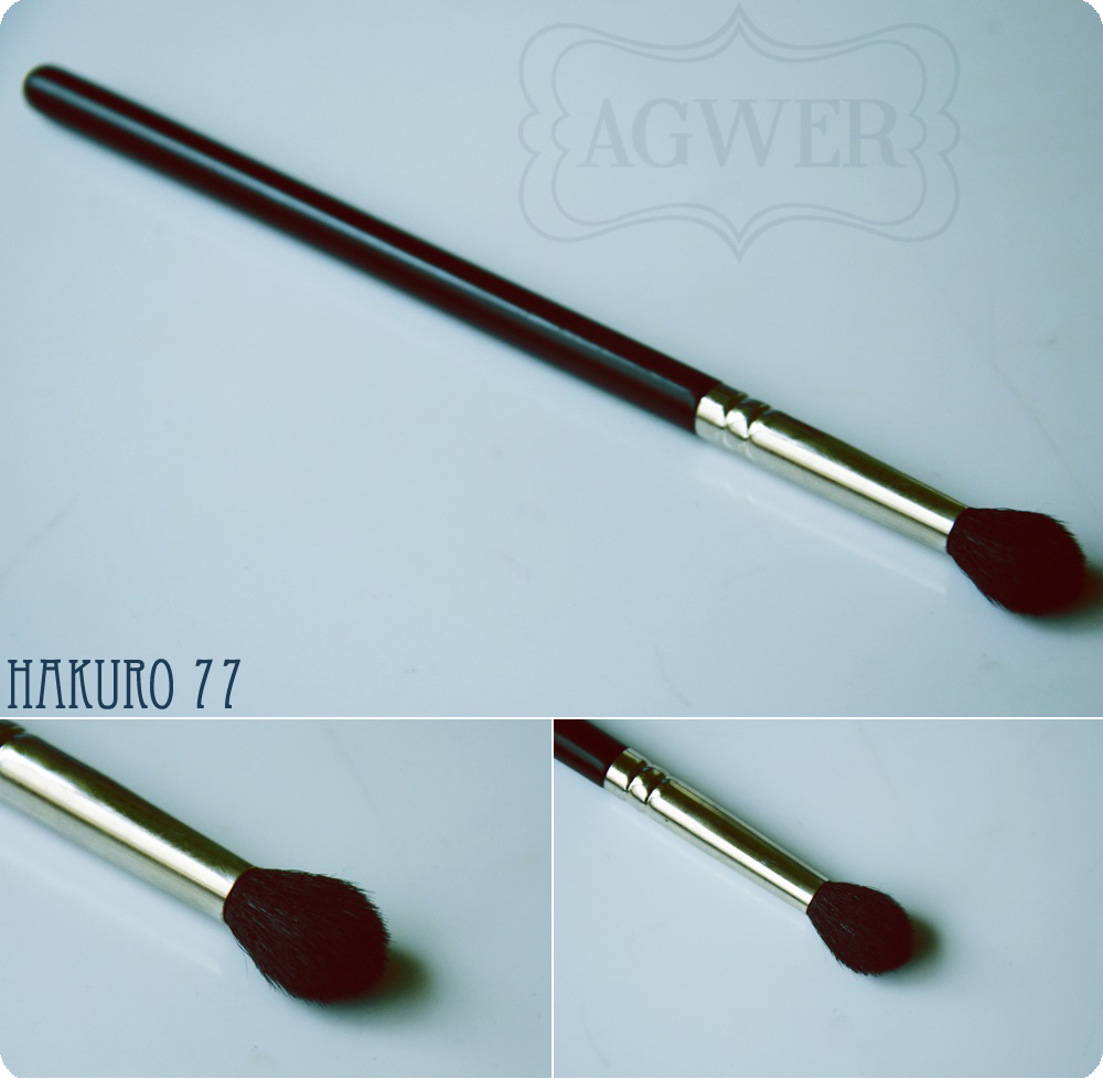 Jeżeli chodzi o rozcieranie granic między cieniami, co każdej z nas się marzy idealny do tego jest pędzel H77. Dla osoby początkującej, albo nawet zaawansowanej jest to świetny pędzel, który warto mieć w swojej kolekcji. Hakuro mają sporo cieni do rozcierania, mam 2 z nich, ale uważam że ten jest bezkonkurencyjny (jeżeli mówimy o pędzlach tej firmy). Wykonany jest z naturalnego włosia. Długość całego pędzla to: 18cm, a włosia 1,8cm. Cena: ok. 16zł