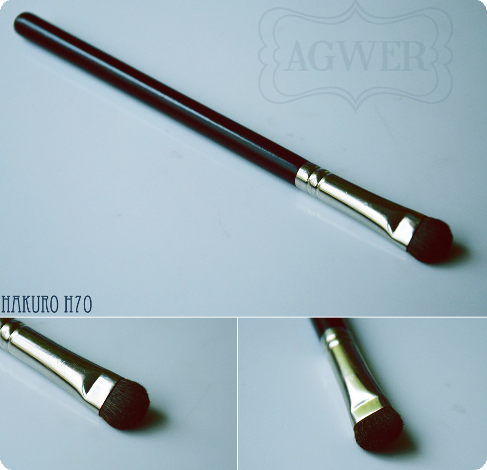 Przede wszystkim pędzel do nakładania cieni, który nie będzie ich rozsypywał, ani nie zmieniał ich pigmentacji i do tego świetnie nadaje się pędzel H70. Wykonany jest z naturalnego włosia i przeznaczony jest do aplikacji cieni sypkich jak i prasowanych, według producenta nadaje się również do nakładania cieni pod linię brwi, aczkolwiek ja używam do tego innego pędzla, który nadaje się do tego lepiej (H80, o którym więcej poniżej). Długość całego pędzla to 17,5cm a samego włosia 1cm. Cena: ok 15zł.