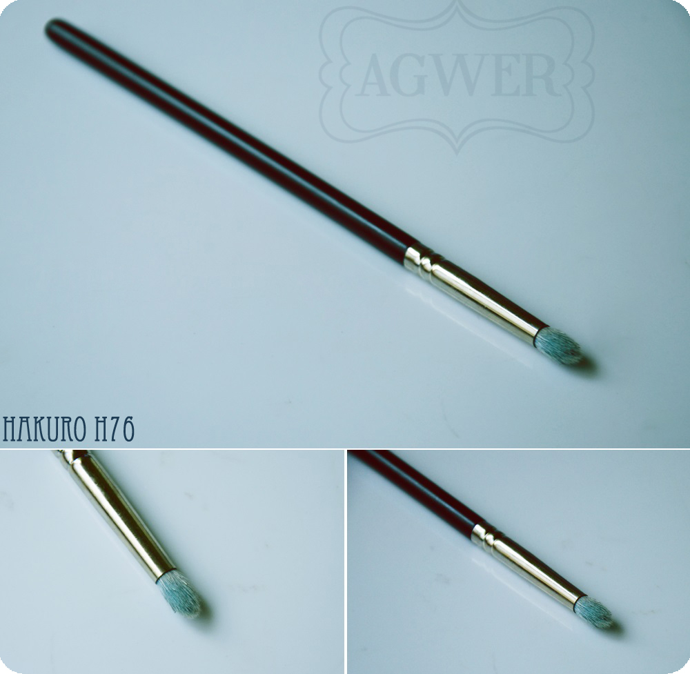 Pędzel, który idealnie sprawdza się do nakładania cieni do wewnętrznego kącika oka, to pędzel H76, fajnie sprawdza się również do ich aplikacji w załamaniu powieki. Wykonany jest z naturalnego włosa kozy, który ucięty jest w kształt spiczastego jajeczka, co fajnie ułatwia nam aplikację cieni. Bardzo lubię ten pędzel i naprawdę świetnie sprawdza się w swojej roli. Długość pędzla to 15cm, zaś włosia 1cm. Cena: ok. 16zł.