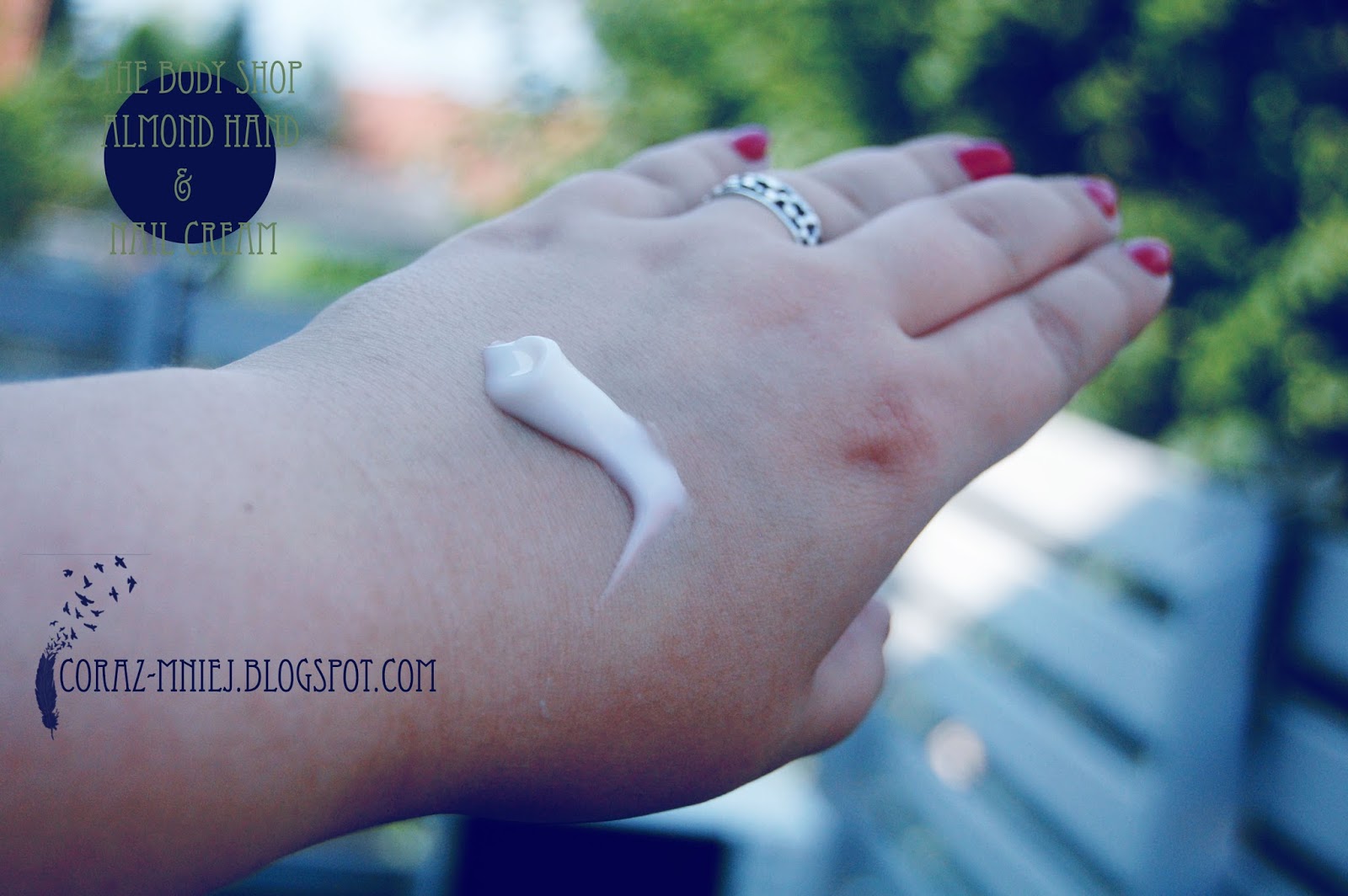 Ten krem jest kremem migdałowym do dłoni i paznokci, zapach właściwie mało przypomina migdały, ale jest przyjemny, nie chemiczny ewentualnie z odrobinką migdała. Utrzymuje się na skórze dość długo, ale nie cały dzień, stopniowo słabnie i po kilku godzinach praktycznie wcale go nie czuć.