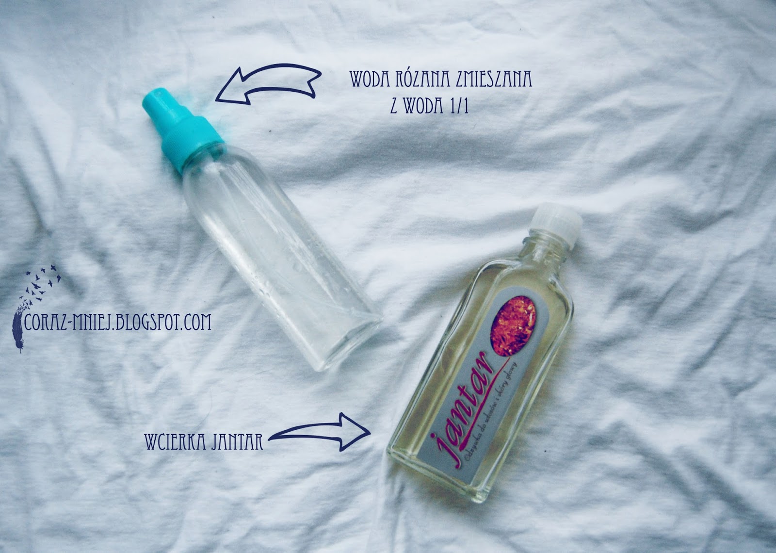 Ponadto do mojej pielęgnacji dorzucam jeszcze wcierkę Jantar, której niestety w tym miesiącu nie używałam zbyt często. Kompletne wypadło mi z głowy wcieranie, przede wszystkim przez wyjazd i jak wróciłam wyleciała mi z głowy żeby do niej wrócić. Poprawię się w tym miesiącu bo wiem, że daje efekty. Jeżeli chodzi zaś o wodę różaną, przeczytałam o tym na blogu Anwen przy okazji posta o jakiejś masce. Ja podobnie psikam włosy wodą różaną zmieszaną ze zwykłą wodą przed nałożeniem maski w celu nawilżenia.