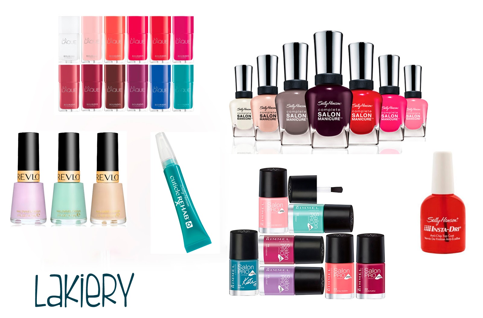 Sally Hasen Salon manicure – sprawdzone, znane lakiery. Dobra trwałość, świetne krycie i mocny połysk. Ja byłam, i w sumie wciąż jestem z nich zadowolona, więc polecam rzucić okiem. Szczególnie, że ta seria ma spory wybór kolorów. Kosztują 29,99zł poza promocją.