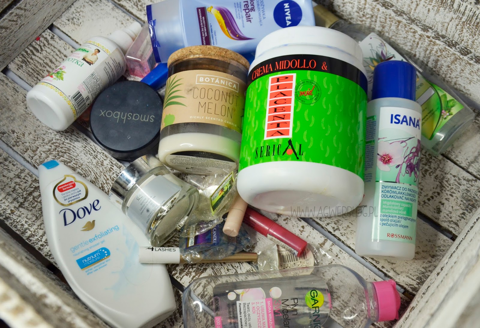 - Alva, maska do twarzy – to maseczka, którą wygrałam spory czas temu w konkursie, już nawet nie pamiętam jakim. Rzadko jej używałam bo miałam wrażenie, że mnie podrażnia. Za każdym razem miałam mocno zaróżowione policzki, skończyła się data ważności, więc maska powędrowała tam gdzie jej miejsce, czyli do kosza!