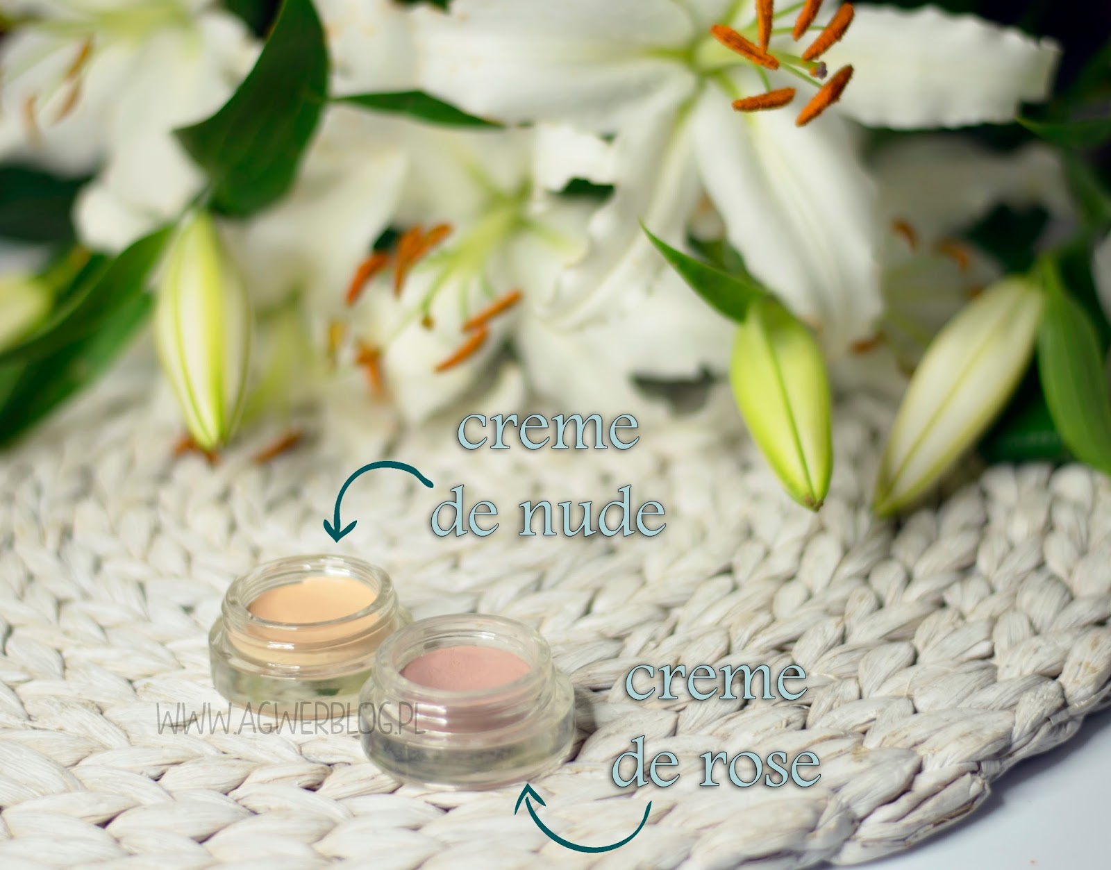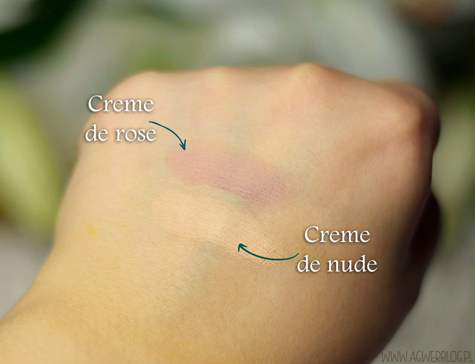 Creme de nude – to bardzo jasny odcień beżu o żółtych podtonach, w związku z tym pięknie stapia się ze skórą. Cień ma mocny pigment, więc świetnie tuszuje wszystkie zasinienia, zaczerwienienia i widoczne żyłki na powiekach. Idealnie nadaje się do jasnych karnacji i zasinionych powiek. Bardzo dobrze podbija kolory cieni, a makijaż oczu wytrzymuje bez zmian nawet 12h noszenia. Jego neutralność sprawia, że nadaje się pod każde cienie nie zmieniając ich koloru.