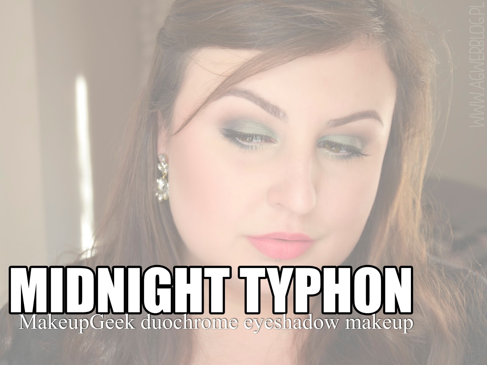 Kiedy zobaczyłam na stronie MakeupGeek i na kanale Marleny, że pojawią się nowe cienie o wykończeniu duochrome wiedziałam, że muszę je mieć! Jaka była moja radość, kiedy parę dni temu paczka z nowościami przyleciała do mnie prosto ze Stanów. Wszystkie cienie już obmacałam i mówiąc szczerze, każdy mi się podoba, a głowa eksploduje pomysłami na makijaże. Bardzo się cieszę, że mam teraz więcej czasu więc mogę sobie poszaleć. Dziś przygotowałam propozycję makijażu, w której główne skrzypce gra cień typhoon, czyli piękna, głęboka zieleń opalizująca na… jaśniejszą zieleń z elementami jasnego złota.