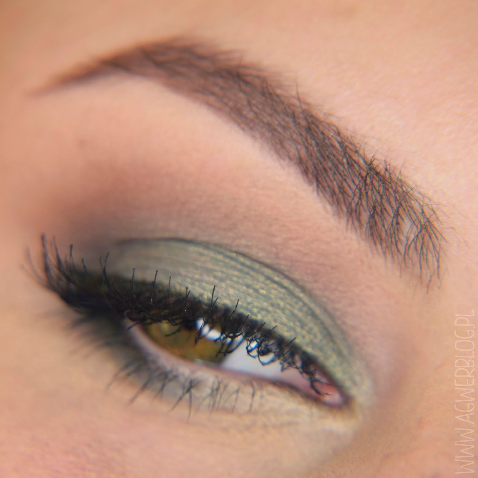 Tak naprawdę podobny efekt możesz uzyskać używając produktów dostępnych od ręki. Do uzyskania efektu złotawej zieleni, wystarczy użyć matowego zielonego cienia, a na wierzch wklepać delikatnie złoty, perłowy cień.