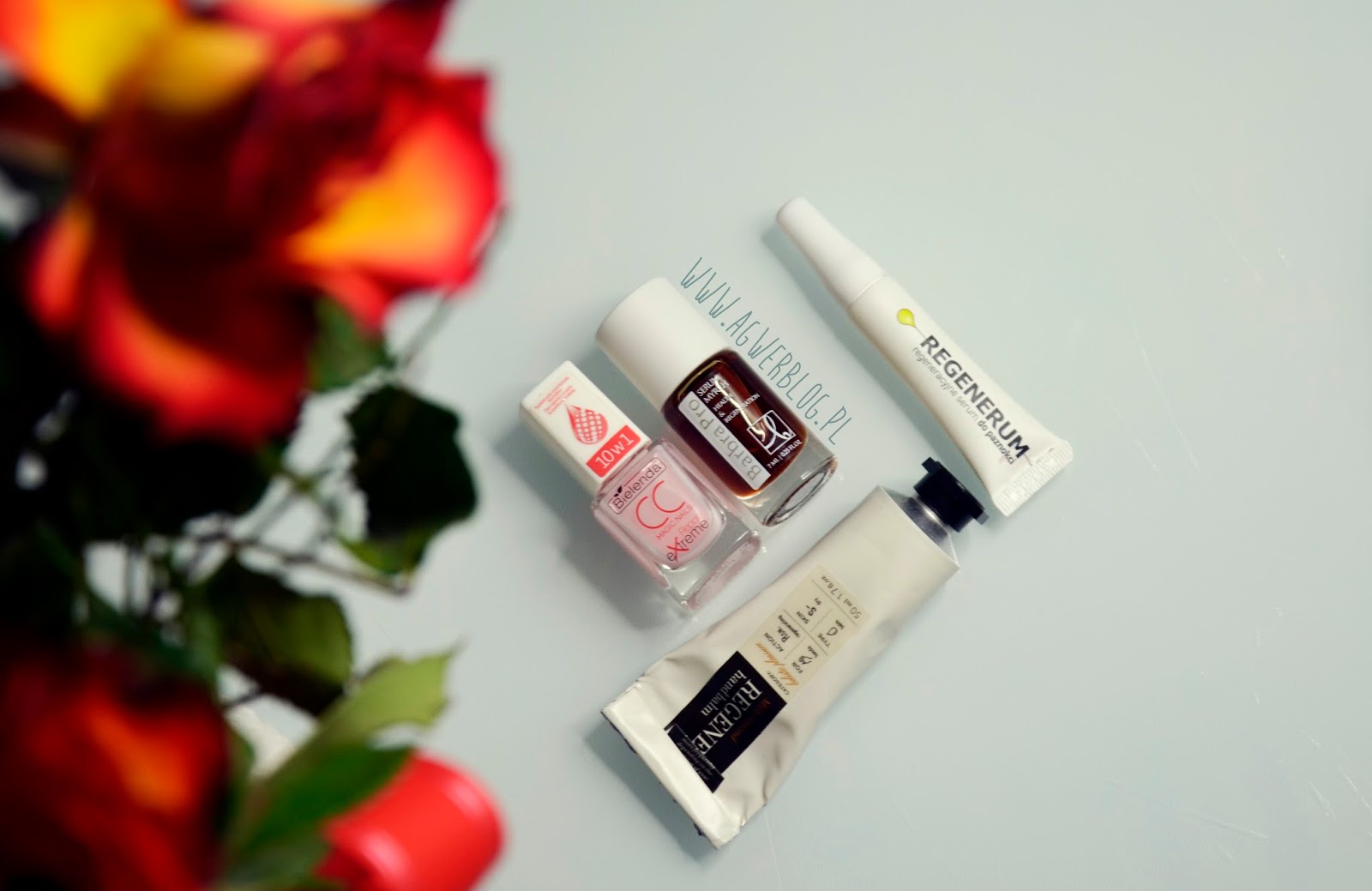 Poza samą odżywką moje paznokcie traktuje dwoma olejowymi serami (nie, nie gouda, ani edamski :D). Wróciłam po krótkiej przerwie do Regenerum, o którym pisałam prawie dwa lata temu [klik], które bardzo mi pomogło wiele razy i liczę na nie znowu. Używam go naprzemiennie z totalną nowością, którą wyczaiłam na Instagramie Idalii. Serum z olejem z mirry Barbara Pro, jest dla mnie totalną nowością i nie wiem czego się spodziewać, ale po paznokciach Idalii liczę, że zdziała cuda, wcieram je codziennie jak zaleca producent i pozostawiam do wchłonięcia. Co prawda według zaleceń nie powinnam malować paznokci, ale nie mogę zostawić ich gołych, bo każdy, nawet drobny uraz, owocuje nowym pęknięciem, złamaniem zadziorkiem.