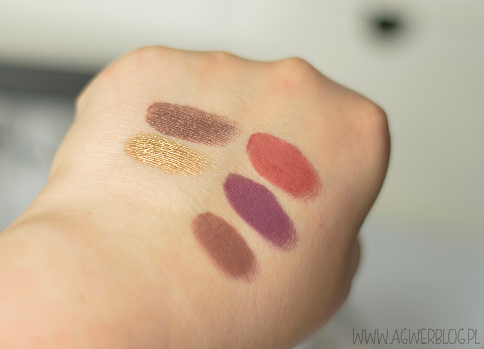– Melkior Professional cienie: Natural skin, Old brick, Prune, Red leaf, Gold metal,