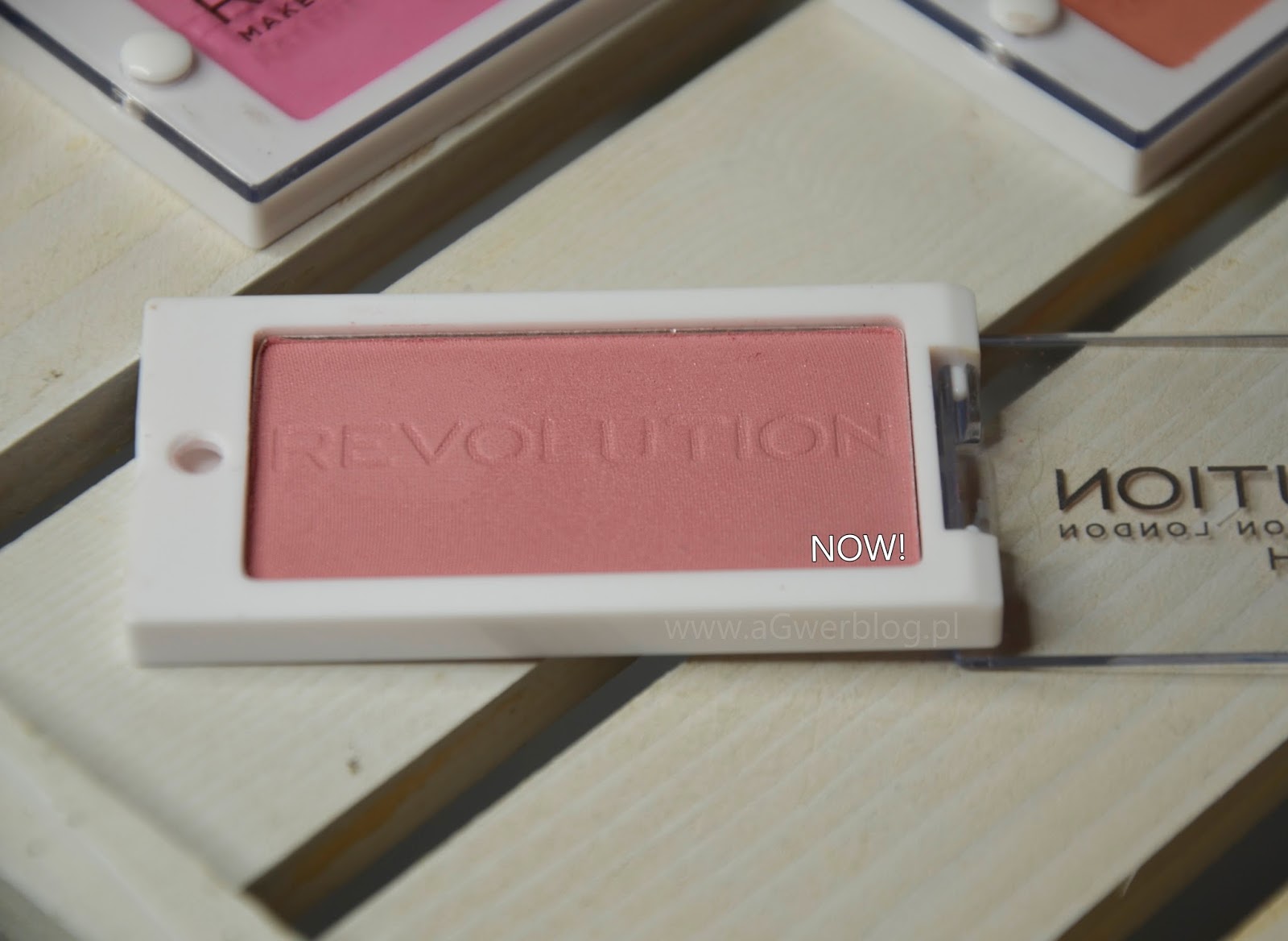 NOW! – to taka bardziej różowa i delikatnie cieplejsza wersja różu LOVE, która w dodatku ma maleńkie drobinki. Na szczęście nie są one mocno widoczne na skórze, a przyjemnie odbijają światło dodając skórze blasku. To również jeden z moich ulubieńców i podoba mi się efekt delikatnego rozświetlenia.