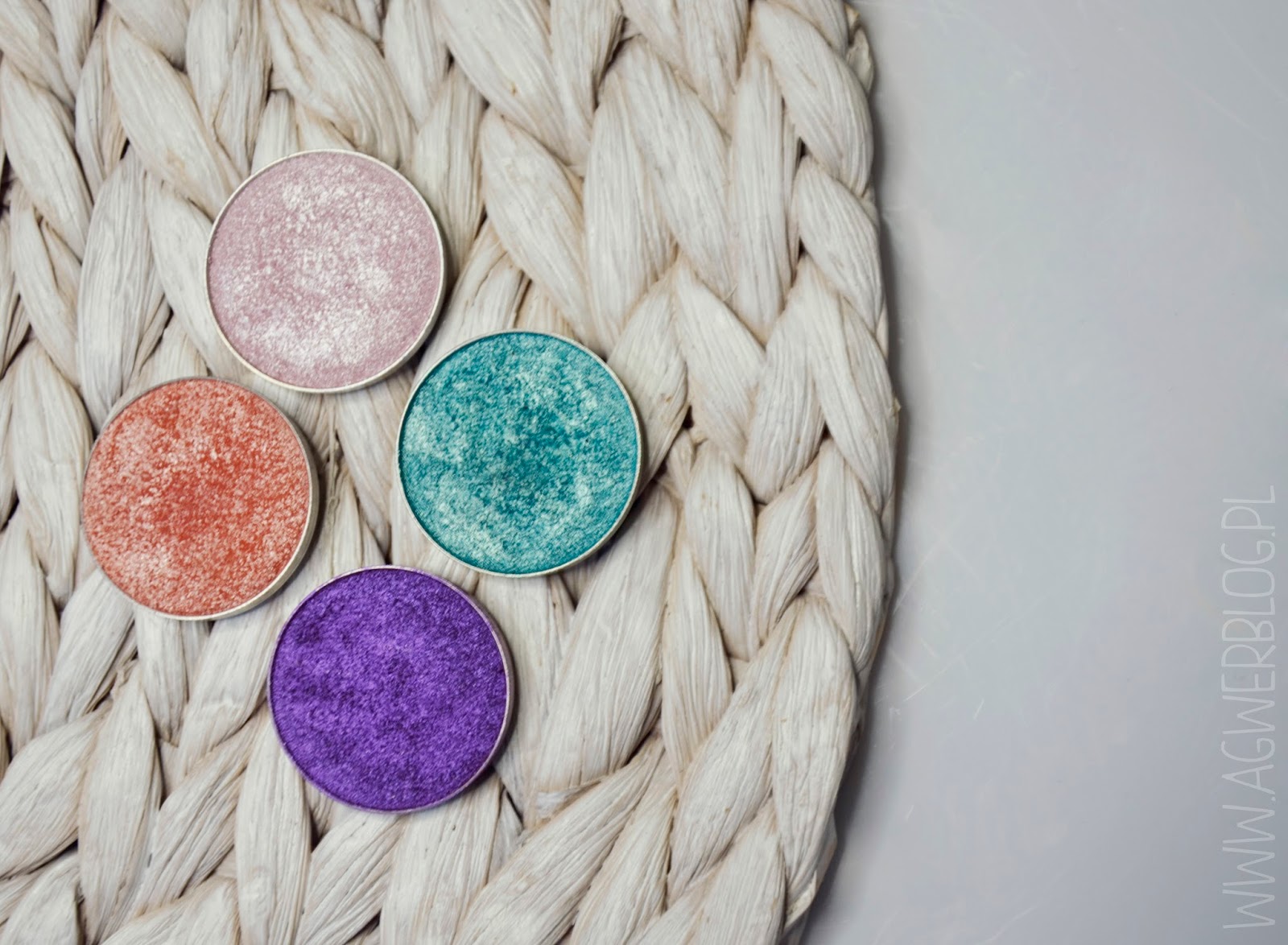 Im na dworze wyższa temperatura, tym mam mniej energii żeby w ogóle się malować. Na szczęście w maju temperatury były jeszcze znośne, więc można było poszaleć. Niestety czerwiec przyniósł takie upały, że makijaż momentami wydaje mi się po prostu, bez sensu. Jestem zdecydowanie zimnolubna i dla mnie lato to najgorsza pora w roku, nie da się oddychać, wszyscy śmierdzą i są spoceni, to kompletnie nie mój klimat… Wracając jednak do tematu, w maju moimi oczami zdecydowanie zawładnęły foliowe cienie Makeup Geek, zresztą nie tylko foliowe, ale i cała reszta. Na zdjęciu pokazałam Wam cztery, które najczęściej gościły w moim makijażu, czyli: Pegasus, Whimsical, In the Spotlight i Caitlin Rose. Za pomocą tego ostatniego zrobiłam ostatnio makijaż, który pokazywałam Wam na moim FB, dokładnie [ tutaj ].